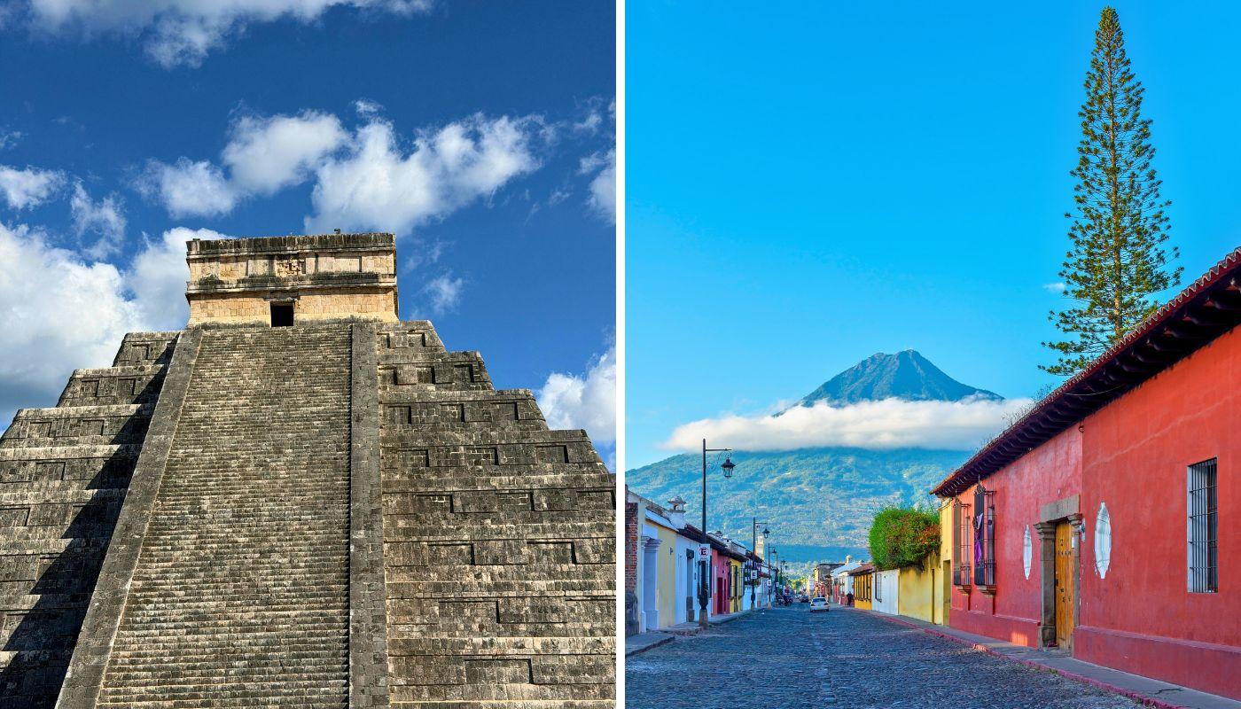 ¿Qué te parecería seguir las huellas de los antiguos mayas a través de dos países con gran herencia de esta civilización? Comienza la ruta maya en Cancún, donde se localizan dos sitios arqueológicos relevantes: Ek Balam y Chichén Itzá. Persigue el rastro maya en Mérida y, posteriormente, en Palenque y Campeche. En Guatemala, después de visitar Ciudad de Guatemala, continúa hasta el pueblo de Chichicastenango, hogar de uno de los más afamados mercados indígenas. Finaliza el circuito maya en la colorida Antigua, declarada Patrimonio de la Humanidad por la Unesco.
